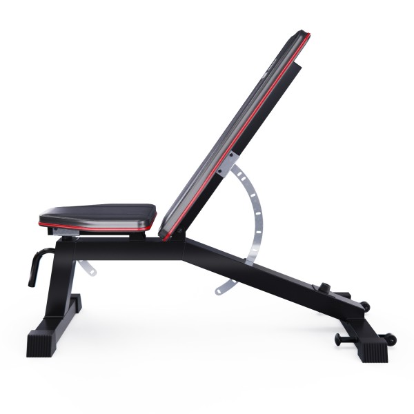 Скамья спортивная универсальная DFC CRYSTAL SJ804 — это идеальное решение для тех, кто хочет организовать полноценный тренажерный зал у себя дома. Этот надежный и многофункциональный домашний тренажер предназначен для выполнения различных упражнений, направленных на развитие грудных мышц, спины, плеч, пресса и бедер. Скамья для жима подходит как для новичков, так и для опытных атлетов, обеспечивая комфорт и безопасность во время тренировок. Скамья для жима лежа способна выдерживать максимальную нагрузку до 300 кг, что делает её надежным и безопасным выбором для тренировок. Скамья изготовлена из легированной стали Q235, обеспечивая высокую прочность и долговечность. Профиль рамы размером 75 x 50 x 1,5 мм гарантирует, что скамья будет оставаться стабильной даже при максимальных нагрузках. Набивка спинки и сиденья толщиной 50 мм из мягкой эластичной экокожи и слоя пены с эффектом памяти обеспечивает комфорт во время тренировок, позволяя снизить мышечную усталость и обеспечивая отличную поддержку. Скамья спортивная имеет 9 уровней регулировки спинки и 3 уровня регулировки сиденья, чтобы быстро преобразовать ее для тренировки в прямое, наклонное и даже отрицательное положение. Угол наклона спинки варьируется от -21° до 85°, что позволяет выполнять широкий спектр упражнений, включая жим лежа и пресс. Сиденье также имеет возможность наклона от 0° до 30°, что добавляет гибкости в тренировочный процесс. Высота от сиденья до пола равна 52 см. На заднем стабилизаторе расположены крепления для эспандеров (эспандеры в комплект не входят), что позволяет разнообразить тренировки и добавлять элементы сопротивления. Скамья для пресса также оснащена транспортировочными роликами, что облегчает её перемещение по помещению. Ручка под сиденьем предназначена для удобного подъема скамьи, что делает её использование еще более комфортным. Большие ножки скамьи для фитнеса прорезинены, чтобы защитить пол от царапин, а противоскользящая конструкция всегда обеспечивает устойчивое положение.